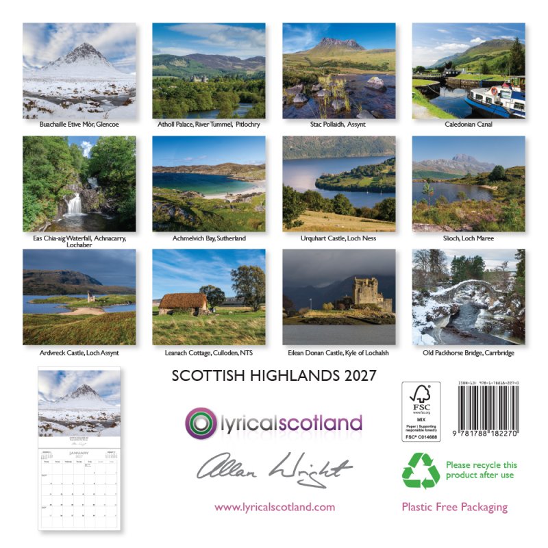 Featuring spectacular photography by Allan Wright, our range of 2027 calendars lets you bring Scotland in all its beauty into your home for the whole year.