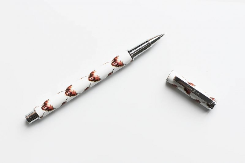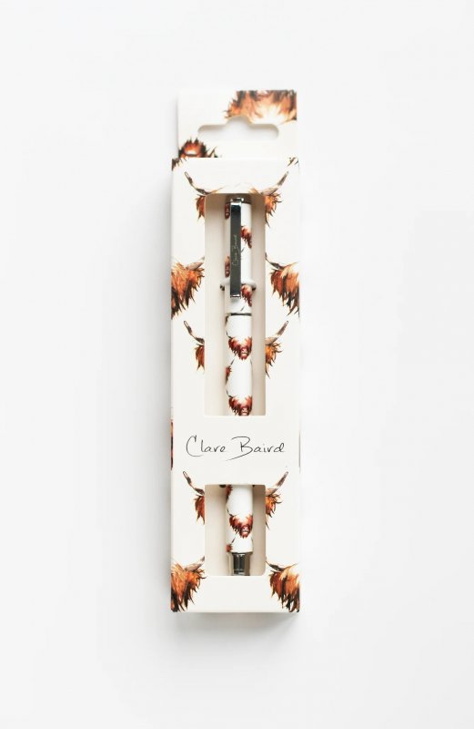 Individually boxed gel pen with stunning watercolour Highland cow design painted by Scottish artist Clare Baird. Perfect as a gift, especially when paired with more of the Clare Baird giftware range.