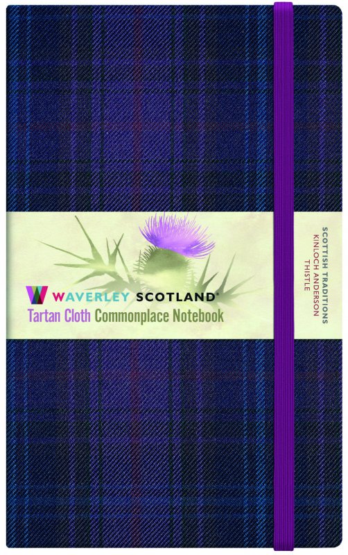The Waverley Scotland Tartan Cloth Commonplace Notebooks each with 192 pages (left blank, right ruled), acid free, threadsewn, 80gsm cream shade pages, are bound in genuine SCottish tartan cloth over board with round cornered covers and bookblock corners, stained edges and a matching leastic enclosure. Each volume has a ribbon marker and an expandable inner note holder made of cardboard and cloth, and removable booklet with background notes, a Clan Map of Scotland, and with an individual bookmark giving detail on the specific tartan used for the binding.