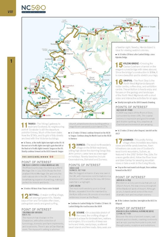 Numerous useful features are located throughout the mapping using distinctive symbols including golf courses, distilleries, Highland Games locations, picnic sites, viewpoints and ferry routes. All AA-rated places to stay and eat are clearly marked and named for easy cross-referencing. The location of steep gradients, snow roads and narrow roads are included to help each journey go smoothly, enabling you to choose the best route for your journey all-year round.