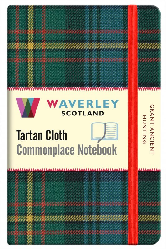 The Waverley Scotland Tartan Cloth Commonplace Notebooks each with 192 pages (left blank, right ruled), acid free, threadsewn, 80gsm cream shade pages, are bound in genuine SCottish tartan cloth over board with round cornered covers and bookblock corners, stained edges and a matching leastic enclosure. Each volume has a ribbon marker and an expandable inner note holder made of cardboard and cloth, and removable booklet with background notes, a Clan Map of Scotland, and with an individual bookmark giving detail on the specific tartan used for the binding.