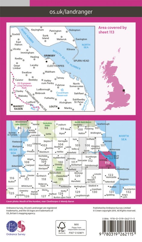 Grimsby is a port town in Lincolnshire on the Mouth of the Humber. OS Landranger map 110 covers the town, as well as nearby Louth, Market Rasen, Saltfleet, Keelby and the Spurn Head Nature Reserve.