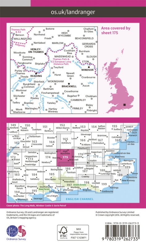 Landranger map number 175 shows Windsor, which offers you the chance to visit the Queen's favourite weekend home. It's almost 1000 years old, making it the oldest and largest occupied castle in the world. Alternatively, cruise down the Thames at Maidenhead for an unwinding experience or explore the bustling town of Reading by visiting the museums and the Abbey Ruins. |