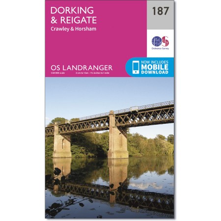 Dorking and Reigate are historic market towns in the heart of the Surrey hills, and appear on OS Landranger map 187. The E2 European Long Distance Path and North Downs Way passes through the lush green countryside with Crawley and Horsham to the south. Highlights include Leith Hill, the highest point in south east England and is crowned by an iconic 18th century gothic tower. |