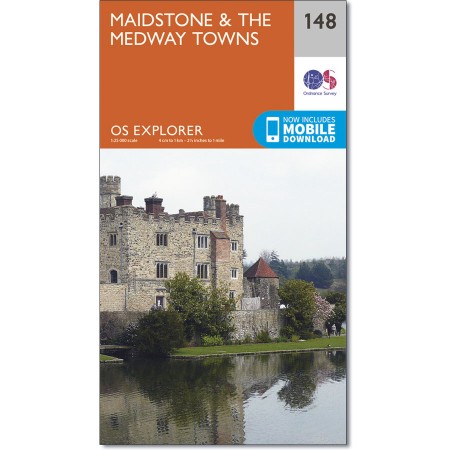 Map sheet number 148 in the OS Explorer series covers an area Stretching from Yalding in the south to Rochester in the north. This historic part of Kent includes the Kent Downs, an Area of Outstanding Natural Beauty.