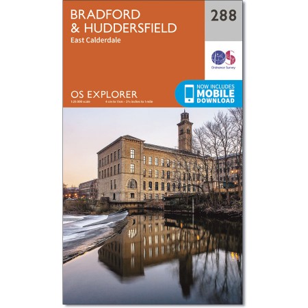 Map sheet number 288 in the OS Explorer series covers a section of the Peak District National Park to the south of Huddersfield. There are numerous walks to enjoy in this area including the Pennine Way, Holme Valley Circular Walk, Kirklees Way, Calderdale Way near the towns of Bradford, Halifax, Brighouse and Bingley. |