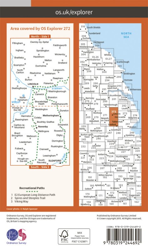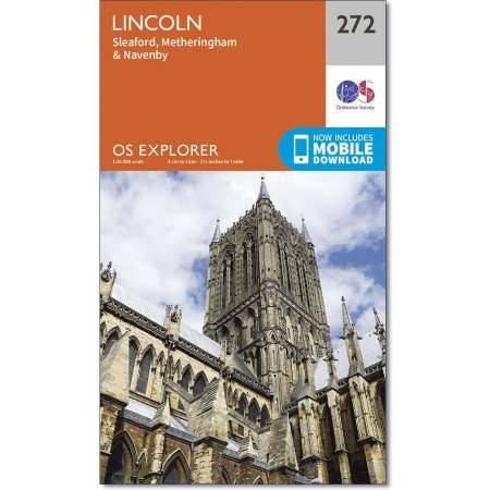 Map sheet number 272 covers Lincoln and Sleaford. Highlights include Lincoln Castle and River Witham. Also includes Metheringham, Navenby and North Hykeham.