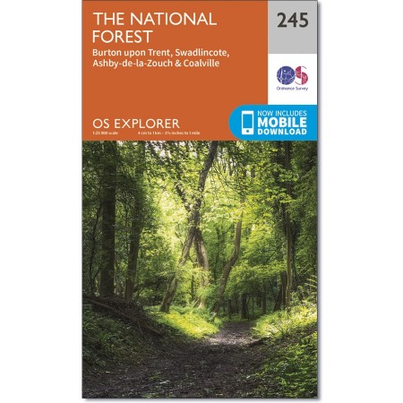 Map sheet number 245 in the OS Explorer series covers The National Forest in the Midlands of England. The Ivanhoe Way is a circular walk that takes in a large section of the National Forest, and other walks in the area include the Leicestershire Round and The Way for the Millennium, taking in the towns of Burton upon Trent, Swadlincote, Ashby-de-la-Zouch and Coalville.