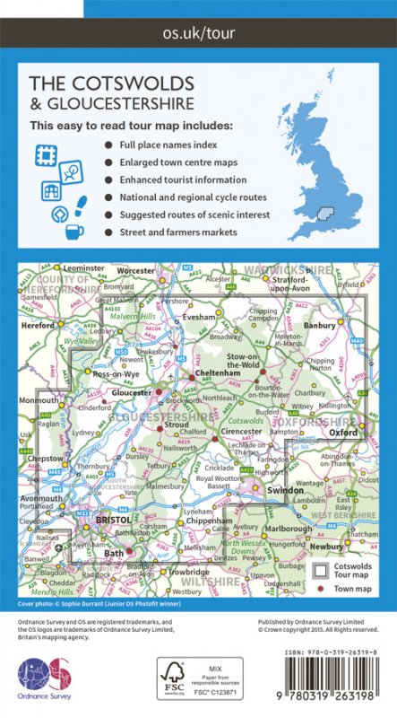 The OS Travel Map 8 for The Cotswolds & Gloucestershire. The Tour and Tourist series road are packed with information to help you get out and make the most of your holiday.