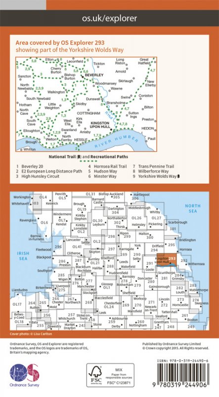 Map sheet number 293 in the OS Explorer series covers an area north of the river Humber around Kingston Upon Hull and Beverley. Highlights of the area include: Yorkshire Wolds Way, Wilberforce Way, Trans Pennine Way and Beverley 20.