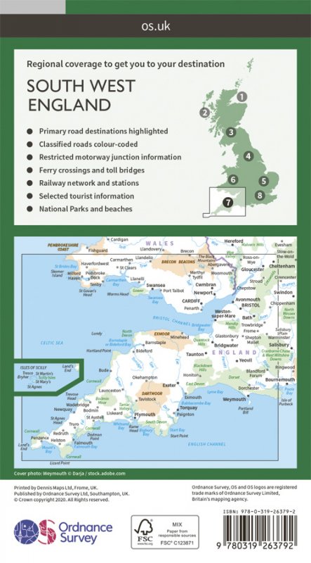 Plan your journey with this series of road maps from OS. Showing all major road, rail and ferry links as well as settlements and selected features in 1: 250 000 scale, this is the ideal map for planning trips and holidays by car or cycle. OS Road 7 covers the south-west England plus south Wales. |