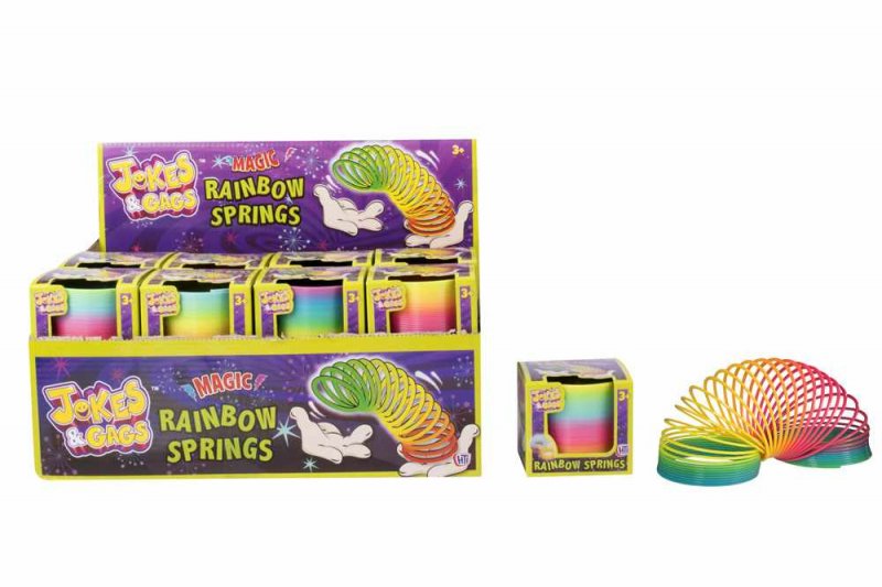The Rainbow Spring is a lot of fun for both boys and girls. This giant spring can walk down stairs jump off walls and stretch! There are also lots of tricks to learn and fun physics to be viewed. Sold in 24s.