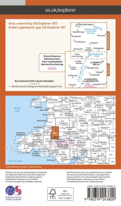 Explorer 187 Llandovery, Llanwrtyd Wells & Llyn Brianne