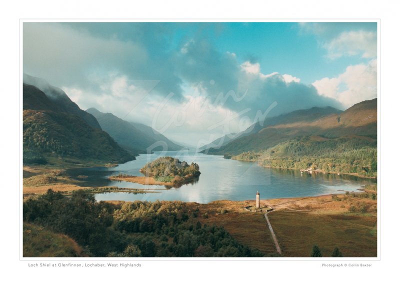 The Glenfinnan Monument stands centinal on the northern shore of Loch Shiel. It was erected in memory of Bonnie Prince Charlie who came ashore here in August 1745 to begin what was the last Jacobite Rising, coming to a bitter and bloody end at the Battle of Culloden on 16th April 1746. A4 size quality print ready for framing. Prints sold as singles. Supplied with backing board and colour information sheet on reverse, all in a polypropene bag. (CB Ref P006) |