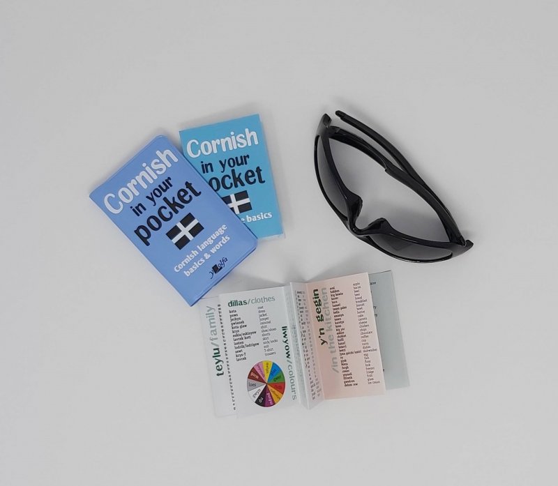 A handy little language aid designed to be carried by Cornish learners at all times. This concertina booklet, contained in protective plastic pouch, offers basic Cornish grammar rules, as well as everyday phrases and a collection of the most commonly used Cornish words. |