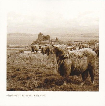 Highlanders At Duart Castle Sepia Greetings Card (LY)