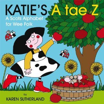 New from Itchy Coo! KATIE'S A tae Z is the eighth in the KATIE series, following the bestselling success of KATIE'S COO, KATIE'S MOOSE, KATIE'S FERM, KATIE'S BEASTIES, KATIE'S YEAR, KATIE'S ZOO and KATIE'S PAIRTY. This new book is aimed at very young children and is the simplest and easiest introduction to Scots words with Karen Sutherland's cheerful and engaging pictures to go with them. On each of the thirteen spreads KATIE introduces two things or animals: one word and one image for each. For example, A is AIPPLE, D is DUG, M is MOOSE, P is PUDDOCK. KATIE'S A tae Z should prove a brilliant introduction to all the other KATIE books.